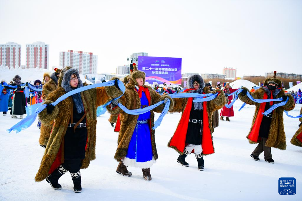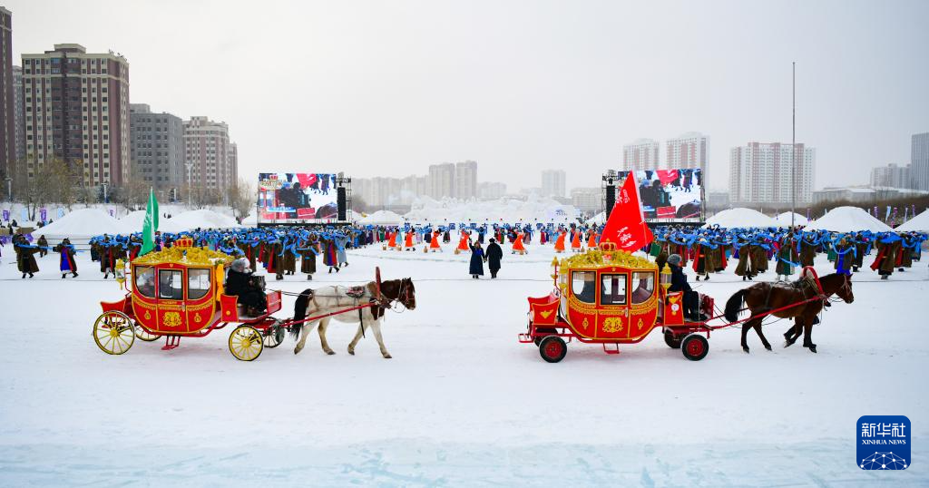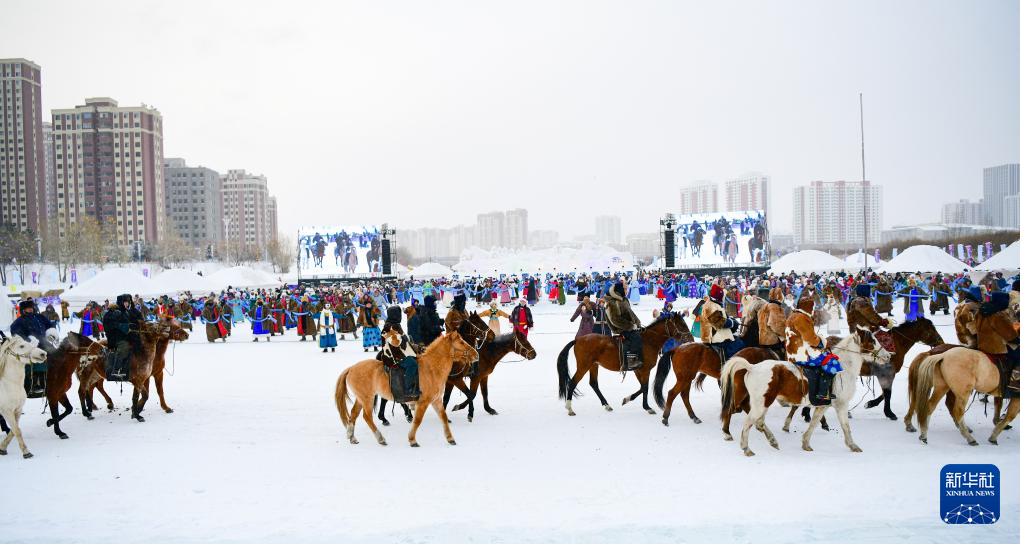 12月20日,参加开幕式彩排的马队入场。 12月20日,第二十一届内蒙古自治区冰雪那达慕开幕式进行了紧张的带妆彩排,演员们冒着严寒、认真演练。开幕式表演极具民族特色,现场观众提前目睹了精彩盛况。第二十一届内蒙古自治区冰雪那达慕将与21日在呼伦贝尔市隆重启幕。(康文魁 摄影报道)