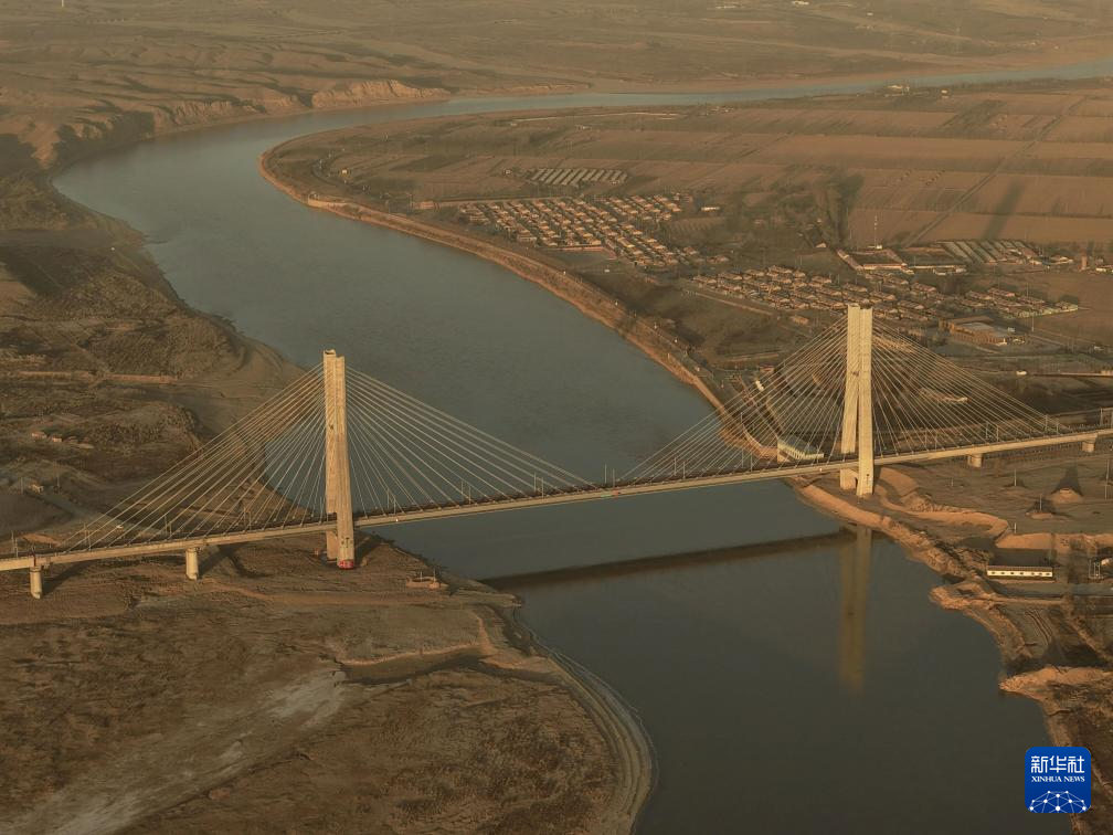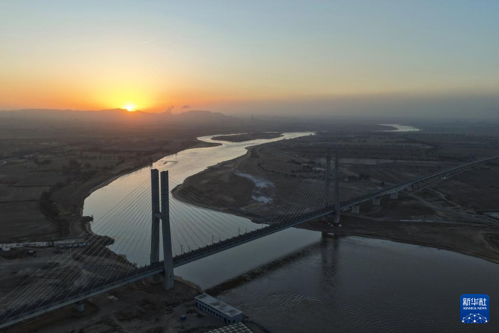 这是12月23日拍摄的包银高铁乌海黄河特大桥(无人机照片)。