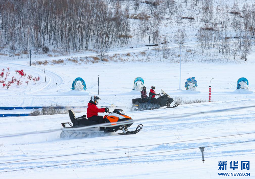 12月22日,游客在凤凰山滑雪场体验雪地摩托。新华网发(康文魁 摄)