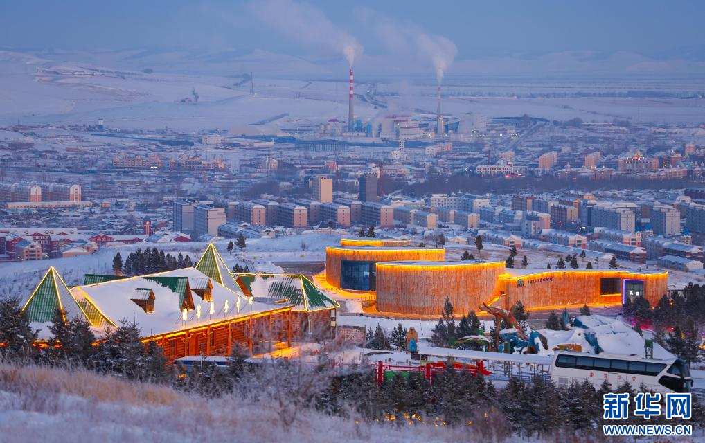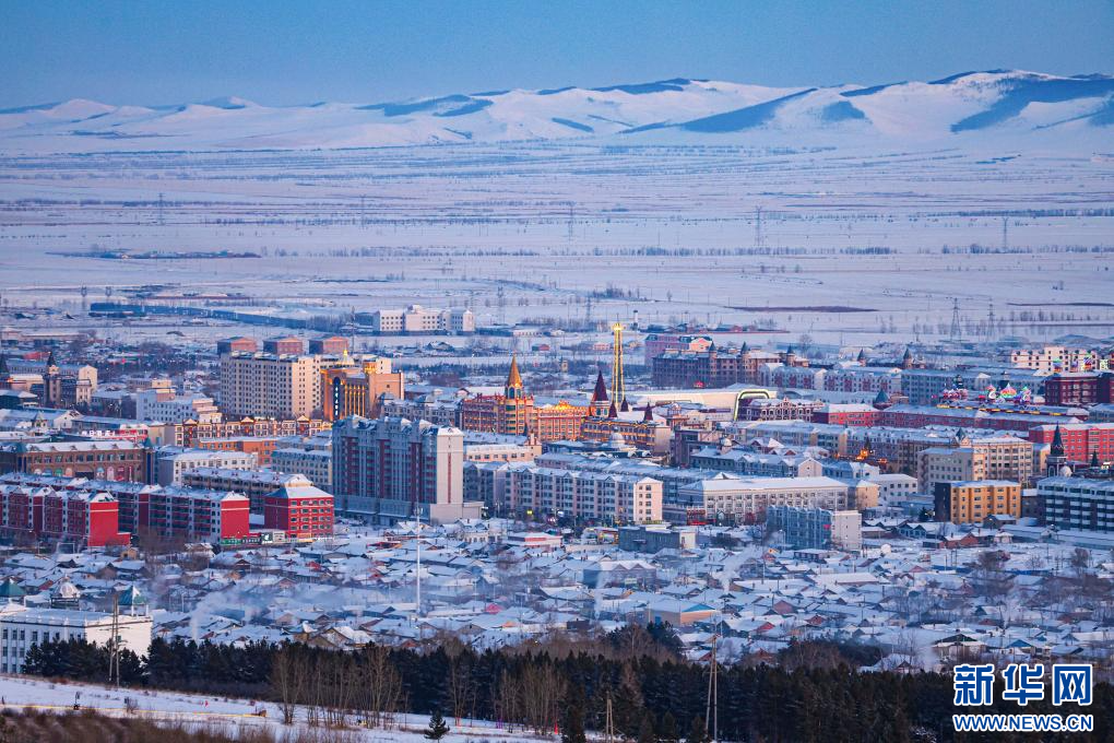 12月23日傍晚拍摄的额尔古纳城市景观。新华网发(康文魁 摄)
