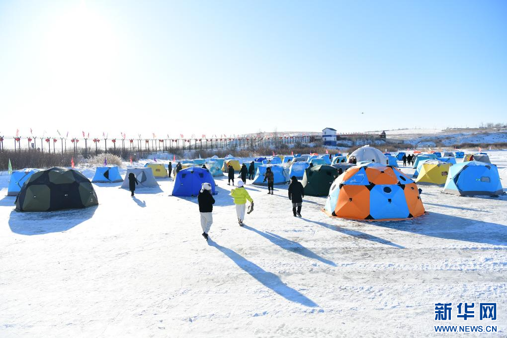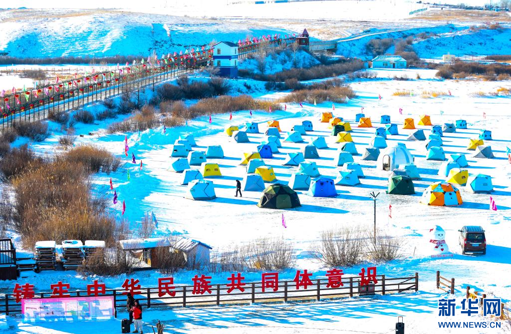 黑山头口岸景区冰钓区的60余顶暖帐错落排布(12月23日摄)。新华网发(康文魁 摄) 这个冬季,内蒙古呼伦贝尔额尔古纳市没有因严寒而沉寂,当地依托独特的冰雪资源禀赋,围绕“冷资源”做好“热文章”,精心策划了一系列特色冰雪活动,让额尔古纳的冬季变得“热火朝天”。