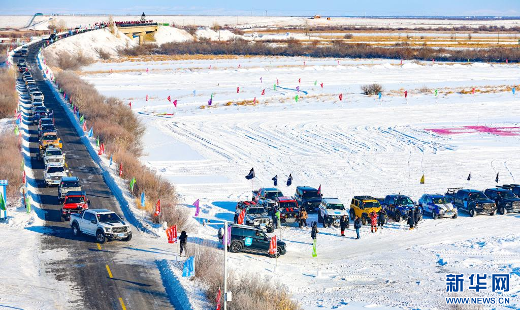 12月23日,自驾游车队驶进黑山头口岸景区。新华网发(康文魁 摄)
