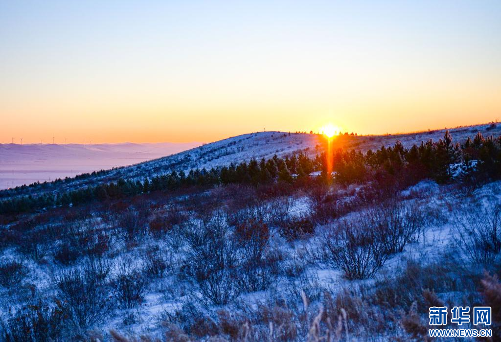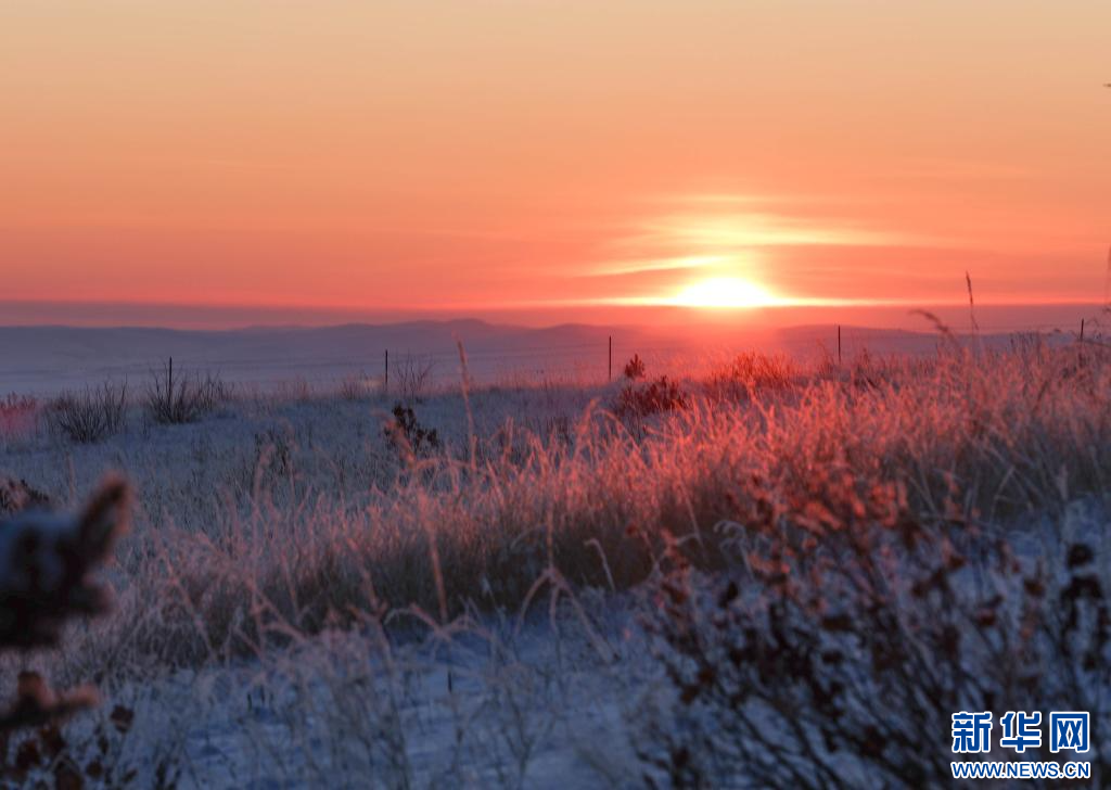 12月23日,在额尔古纳湿地景区拍摄的落日余晖景观。新华网发(康文魁 摄)
