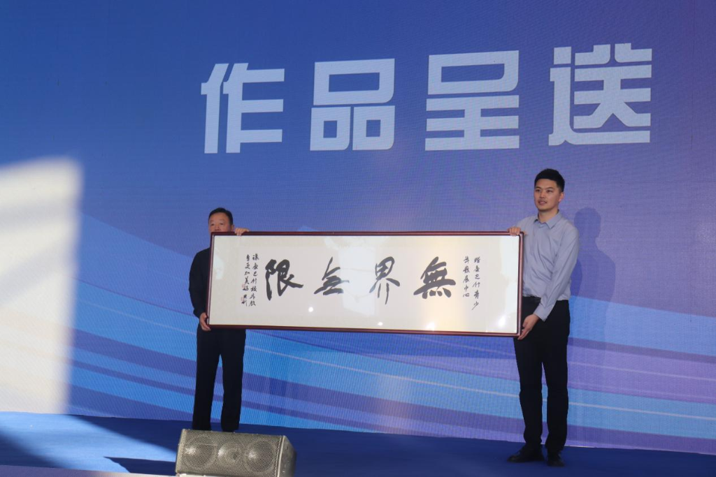 随后,鄂尔多斯市书法家协会副主席刘兴利现场展示并赠送了专为本次发布会创作的书法作品——《无界无限》,以笔墨寄寓对康巴什教育事业的敬意与祝贺,为品牌发展增添了浓厚的文化底蕴。