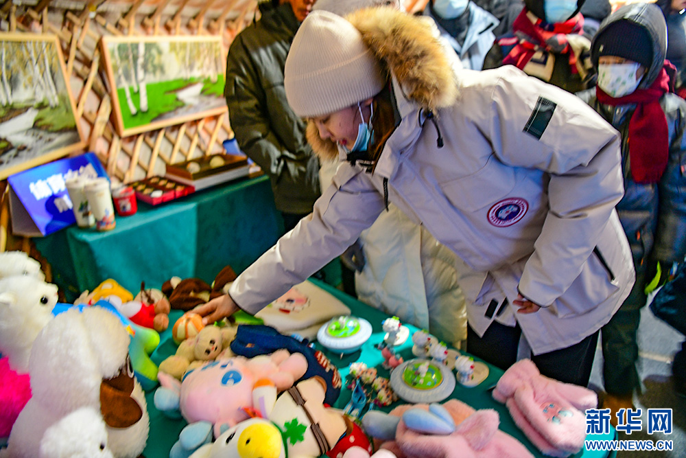 扎赉诺尔区——展销以猛犸象、拓跋鲜卑文化为主题的20余种文创产品,以及达斡尔民族服饰非遗和“湖船”牌鱼罐头等特色食品,提供热饮与暖贴。(毛丫)