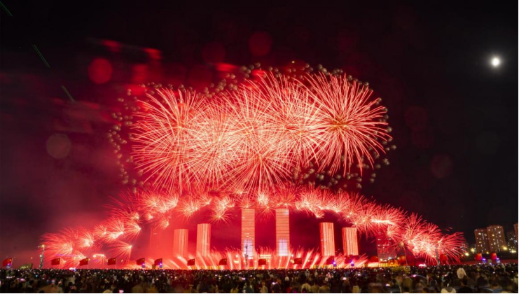 在内蒙古鄂尔多斯市康巴什区,烟花、无人机、喷泉,能解锁怎样的城市惊喜?