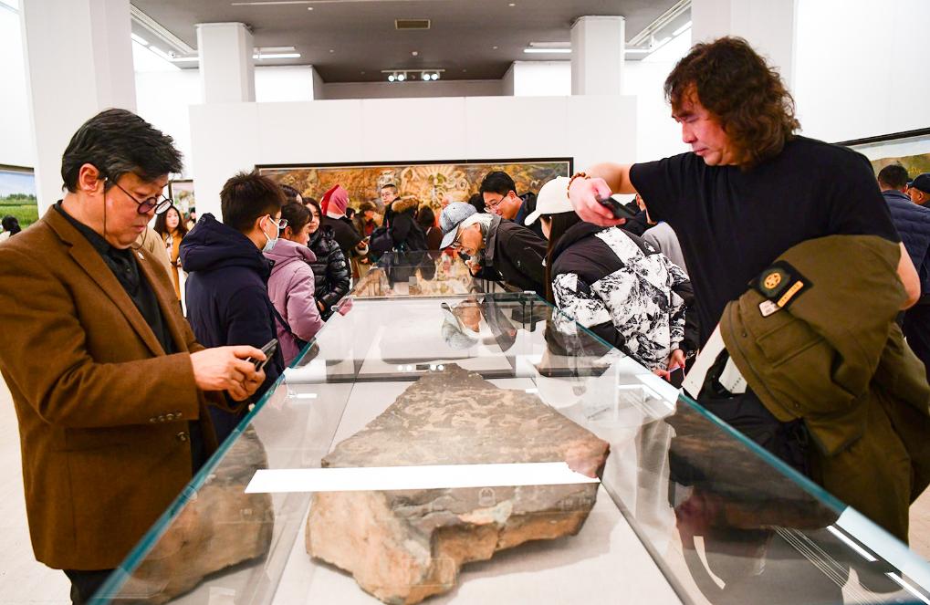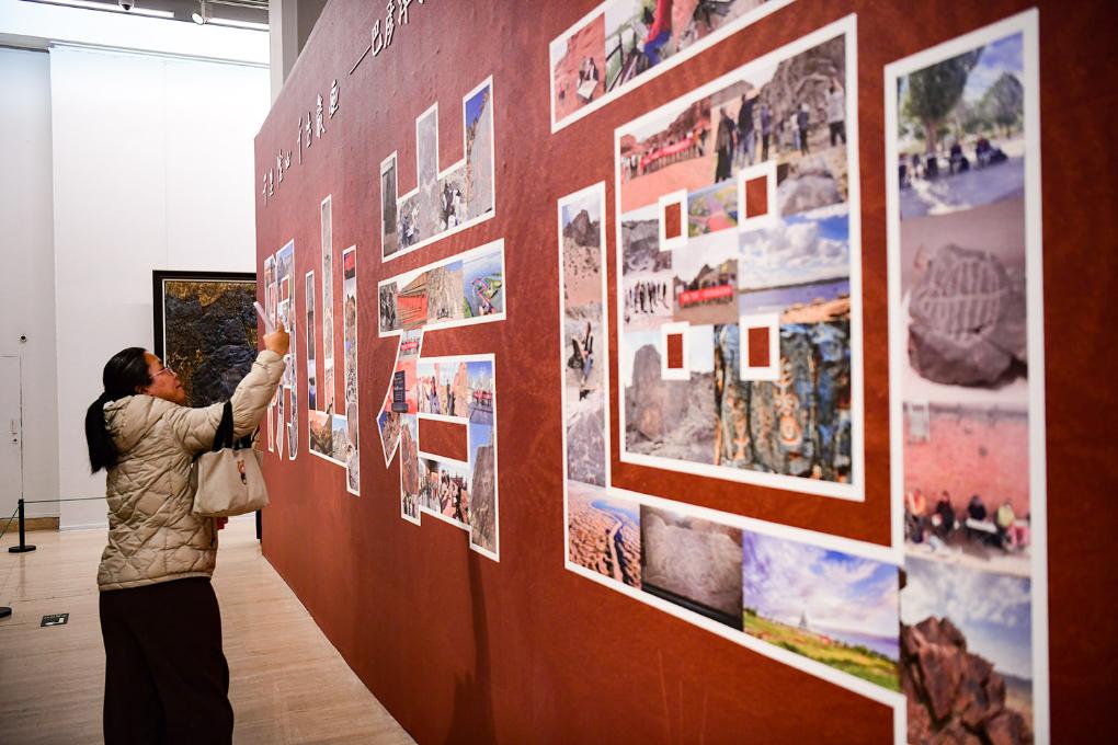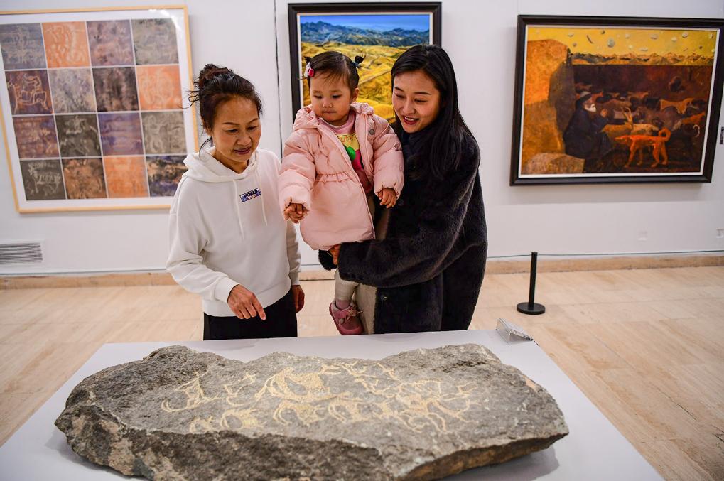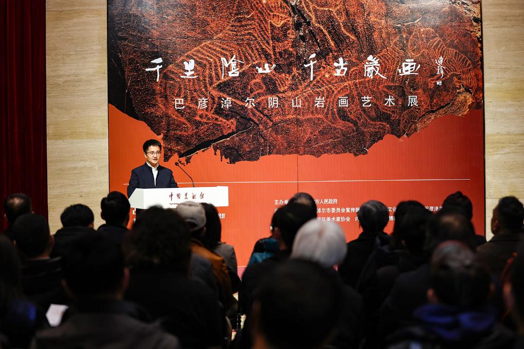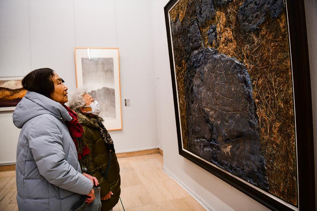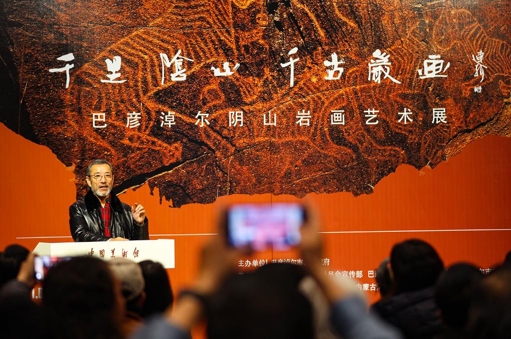 1月7日下午,“千里阴山·千古岩画”巴彦淖尔阴山岩画艺术展开幕式在北京中国美术馆举行。此次展出作品以内蒙古巴彦淖尔阴山岩画为创作主题,共征集到不同风格的油画、国画、水彩画、粉画、版画等艺术作品80余幅,另有拓片、阴山岩画原件和仿制品等20余件。