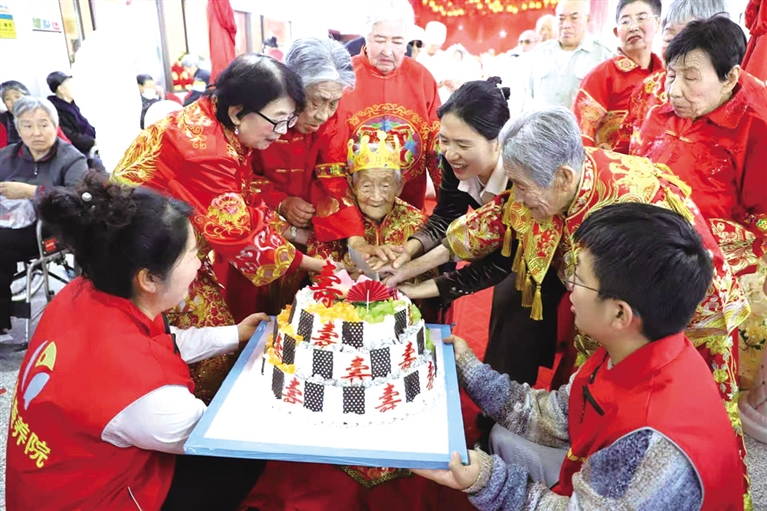养老机构为高龄老人过寿。
