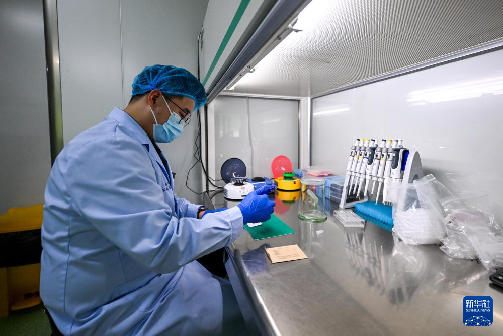 1月7日,锡林郭勒盟公安局刑侦支队刑事技术大队的许锐佳在锡林郭勒盟公安局实验室进行血样检测。新华社记者 李志鹏 摄