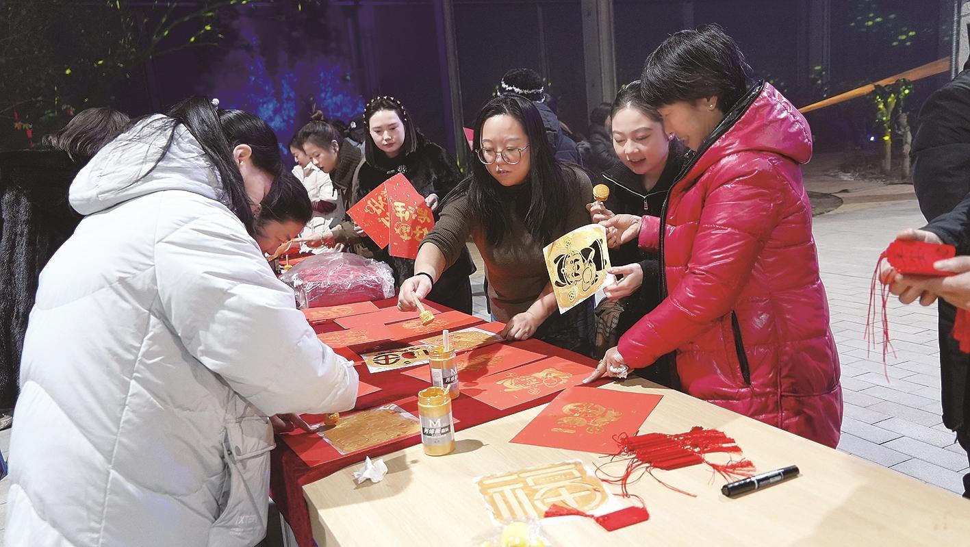 市民正在体验新年祝福拓印。