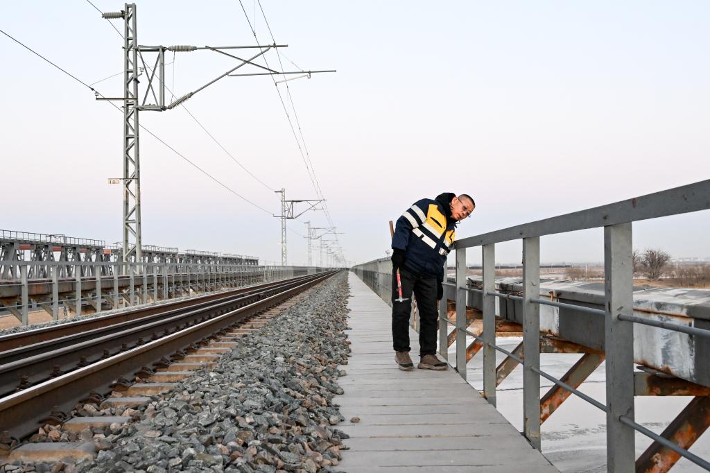 距离三盛公黄河铁路特大桥约5公里处,坐落着包银高铁磴口黄河特大桥,马瑞祥的徒弟、“00后”桥隧工白宇泰承担着该大桥的巡护工作。白宇泰说,2022年他成为一名桥隧工,跟随马瑞祥一同巡护三盛公特大桥。2025年底,包银高铁全线开通运营后,他开始负责包银高铁磴口黄河特大桥的巡检维护。“巡护的桥梁变成了高铁线路桥,这要求我更加认真仔细地完成检查桥梁栏杆、测量桥梁接缝等工作。”