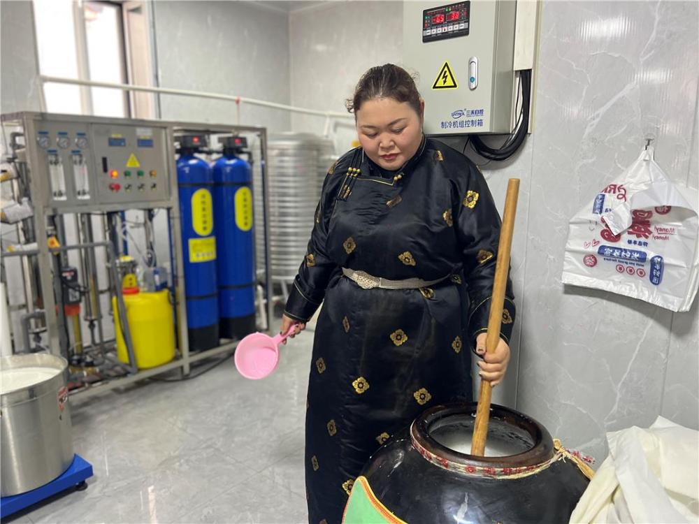 2021年起,恩和巴图注册了“额日其”商标,办了小作坊登记证,建起标准化发酵车间和挤奶大棚,走上了规范化、规模化生产之路。实际上,近年来在锡林郭勒盟大力发展传统奶制品产业的背景下,越来越多的牧户找到了增收密码。