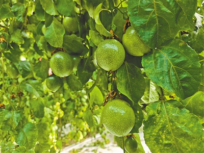 百香果垂挂枝头。