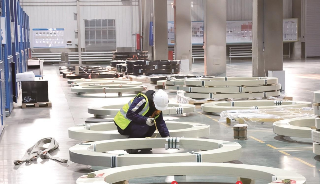 走进包头市风电装备制造产业园,机器轰鸣声此起彼伏,工人们精神抖擞地穿梭于生产线间,一幅“追风逐日”的繁忙画卷徐徐展开。在明阳北方智慧能源(内蒙古)有限公司包头基地,风机传动链对轴、部件检查、位置调整……一道道工序紧密衔接,机械臂挥舞不停。车间外,一批风机叶片整齐排列,正在进行抗疲劳测试,为风机核心部件的可靠性严格把关。