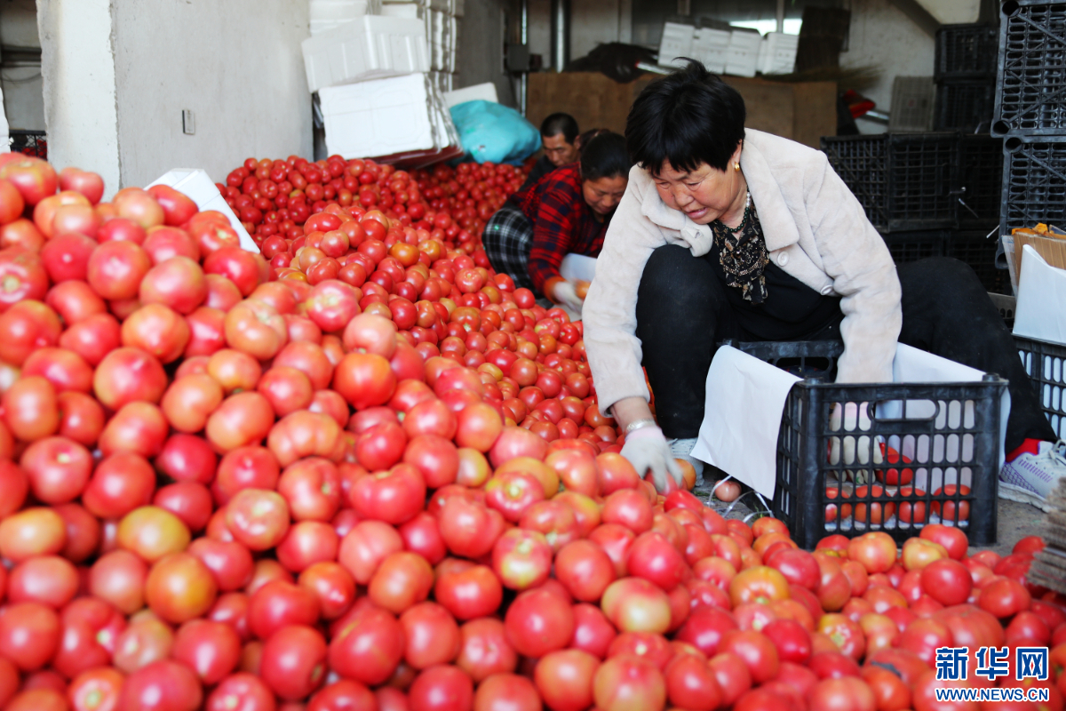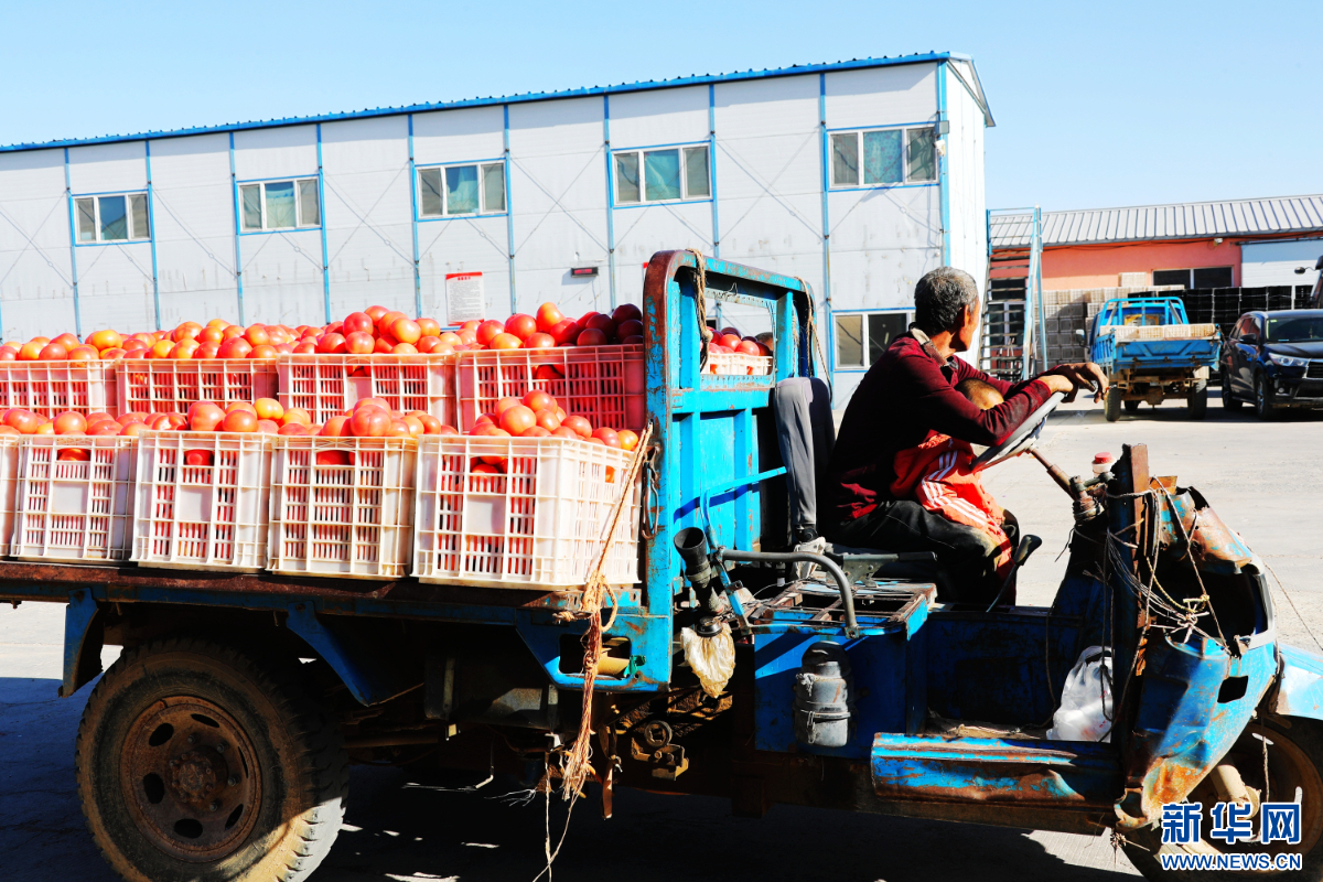 早春时节,赤峰市松山区大庙镇公主岭现代农业产业园区日光温室种植的番茄集中上市,经过挑选装筐后,运往南方市场销售,绘就“北菜南运”助农增收图。
