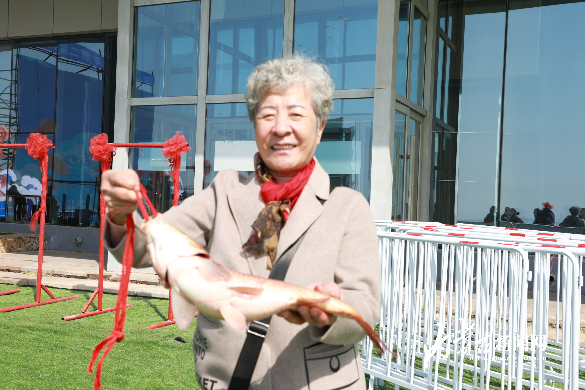 11时30分,渔船满载归港将现场气氛推向高潮。快艇、摩托艇开路护航,渔船与竹筏破浪靠岸,鲜活的开河鱼纷纷出水,丰收景象喜人。同步举行的猜鱼比赛同样精彩纷呈,一位阿姨凭借经验盲猜,报出3.8斤,最终与实际重量分毫不差,当场抱走鲜鱼,引来全场阵阵喝彩。