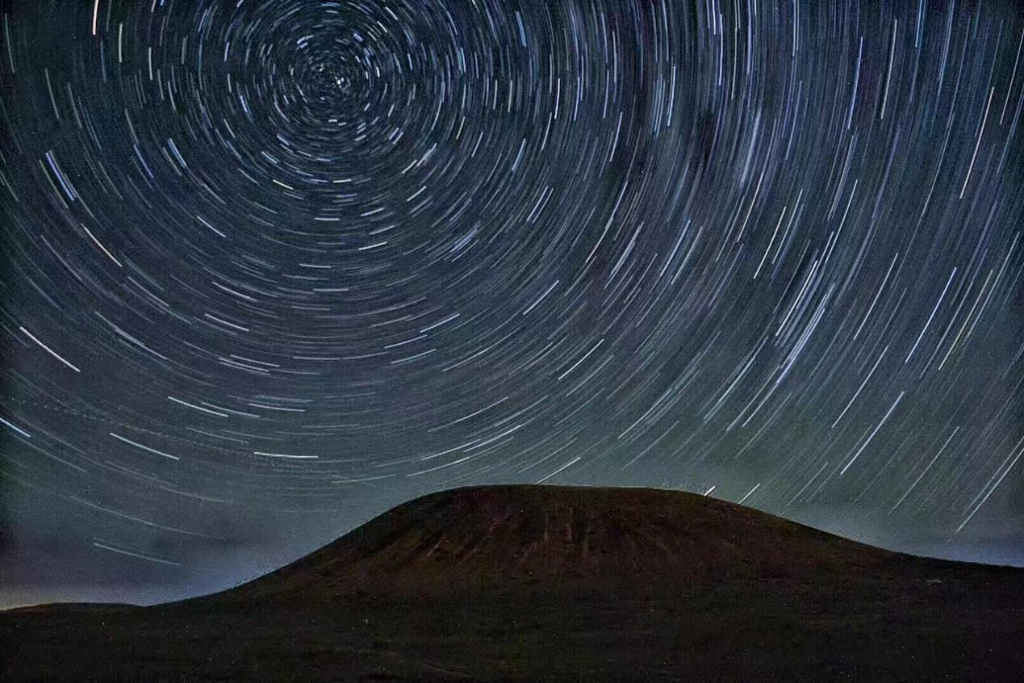 “沿火山旅游路线前行,天鹅湖如蓝宝石镶嵌草原,水鸟掠湖,漾起涟漪,风光旖旎。下山后捧一颗炭烤‘后旗红’土豆,焦皮软芯,蘸上亚麻籽面儿,简单美味藏着最动人的草原风情。夜幕降临,到观星营地邂逅零光害草原夜空,银河横贯,繁星璀璨,浩瀚宇宙扑面而来。从晨光微露到夜幕星河,草原火山的一天在此结束。”刘文辉描述道。