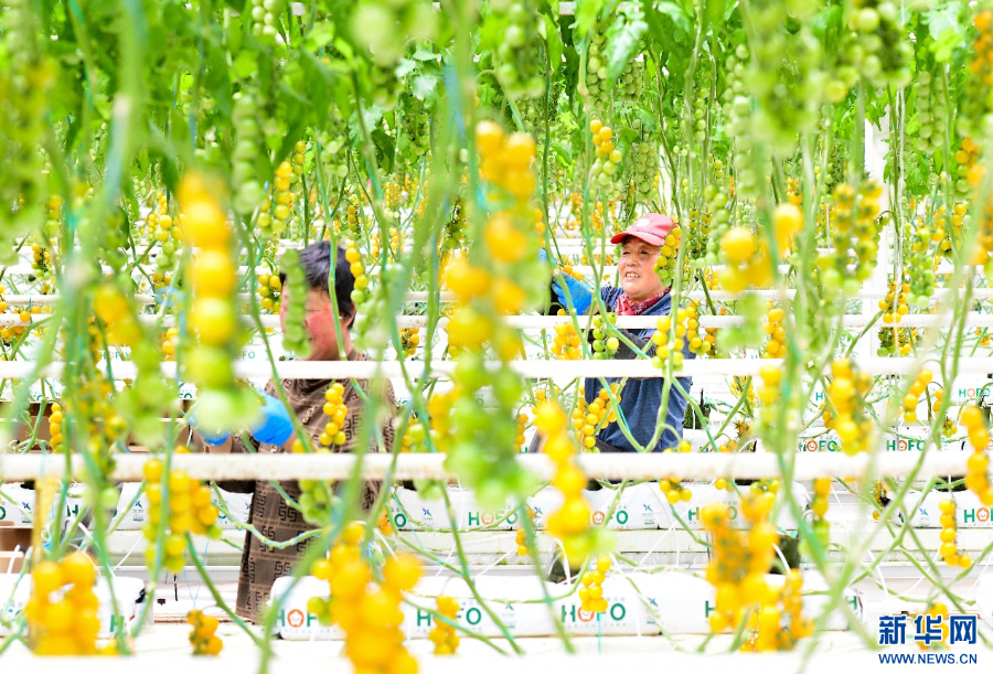 3月22日,工人在乌兰察布宏福农业产业园智能温室里采摘番茄。新华网发(王正 摄)