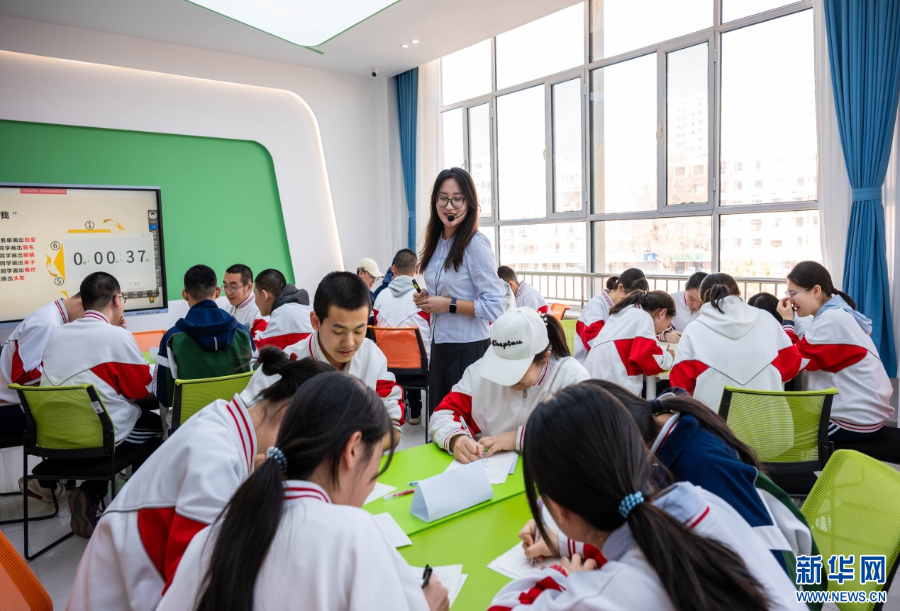 3月25日,呼和浩特市第一中学学生正在上心理健康教育课。新华网发(丁根厚 摄)