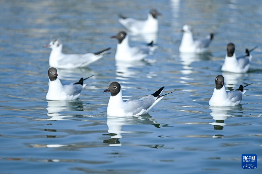 近日,随着天气转暖,大批红嘴鸥来到内蒙古乌海市乌海湖觅食嬉戏,与沙漠、湖泊、城市构成了独特的春日景观,吸引众多游人到湖边打卡观景。