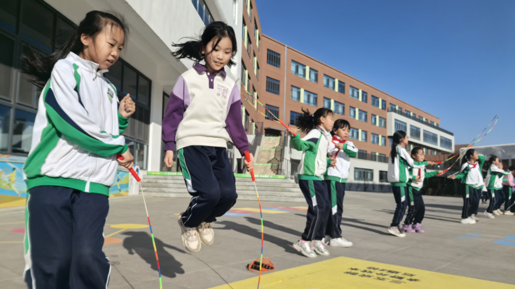 康巴什区将体育锻炼延伸至课间、融入生活,构建“上下午阳光大课间+15分钟课间调节+选项走班课+兴趣社团课”的多维运动体系,让学生在碎片化时间里也能动起来。