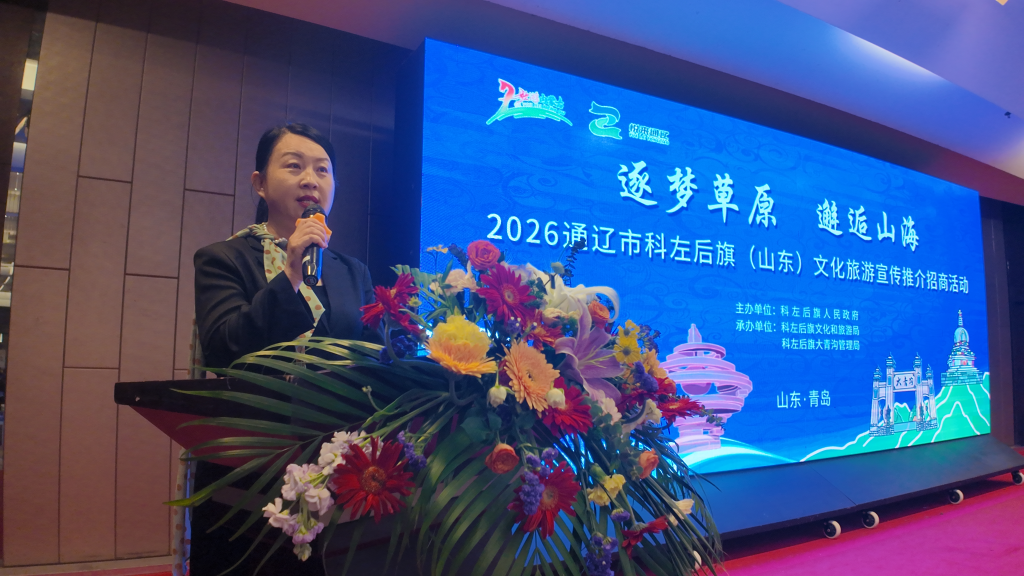 春风传喜讯,山海遇草原。4月9日,“逐梦草原·邂逅山海”2026通辽市科尔沁左翼后旗(以下简称“科左后旗”)(山东)文化旅游宣传推介招商活动在青岛拉开帷幕。活动由科左后旗人民政府主办,旗文化和旅游局、大青沟管理局承办。活动以文旅搭台、经贸唱戏,深化蒙鲁两地文旅交流合作,开拓东部沿海客源市场。