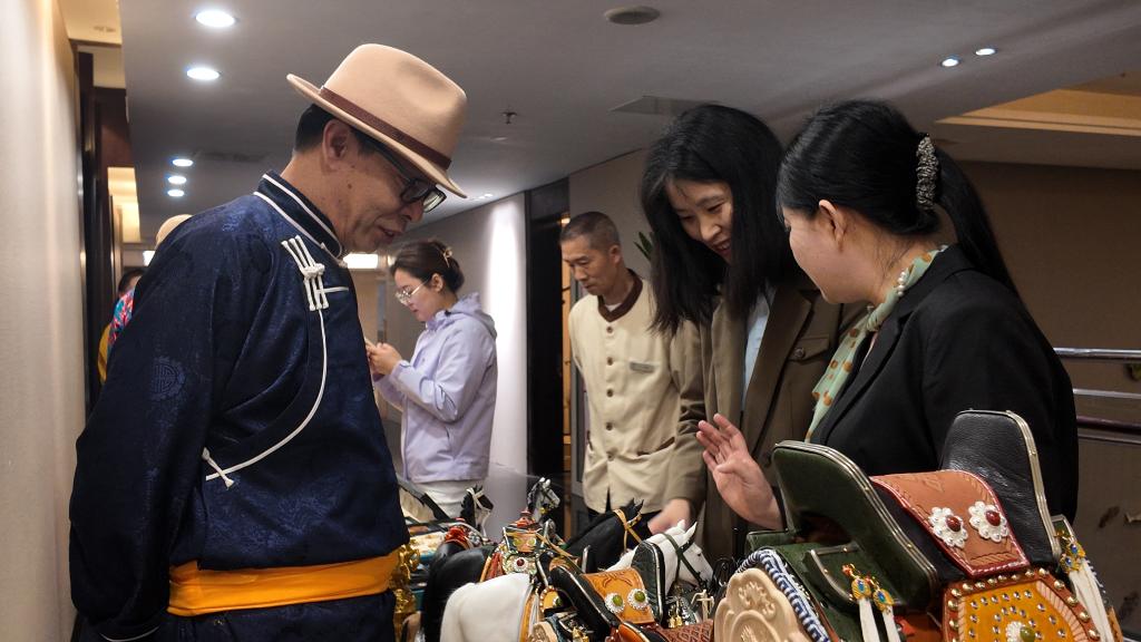 在非遗文创与农特产品展示区,蒙古族马具、皮雕非遗传承人现场介绍非遗技艺、展示马鞍、皮雕等精美作品。奶皮卷、手撕奶酪、奶锅巴、奶茶粉等20余种安牧态奶食品集中亮相,让现场嘉宾近距离感受科尔沁草原深厚的文化底蕴与丰饶物产。