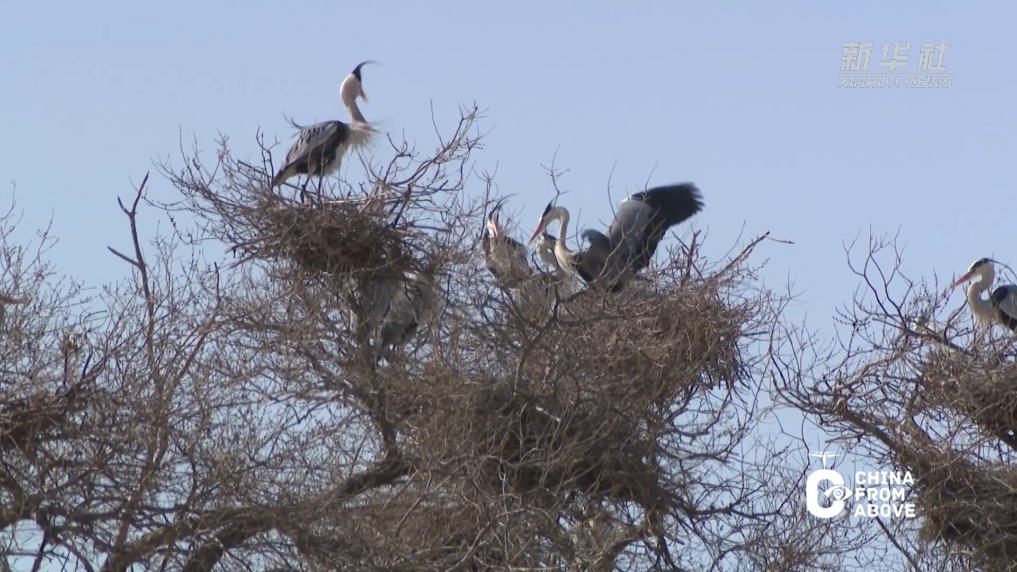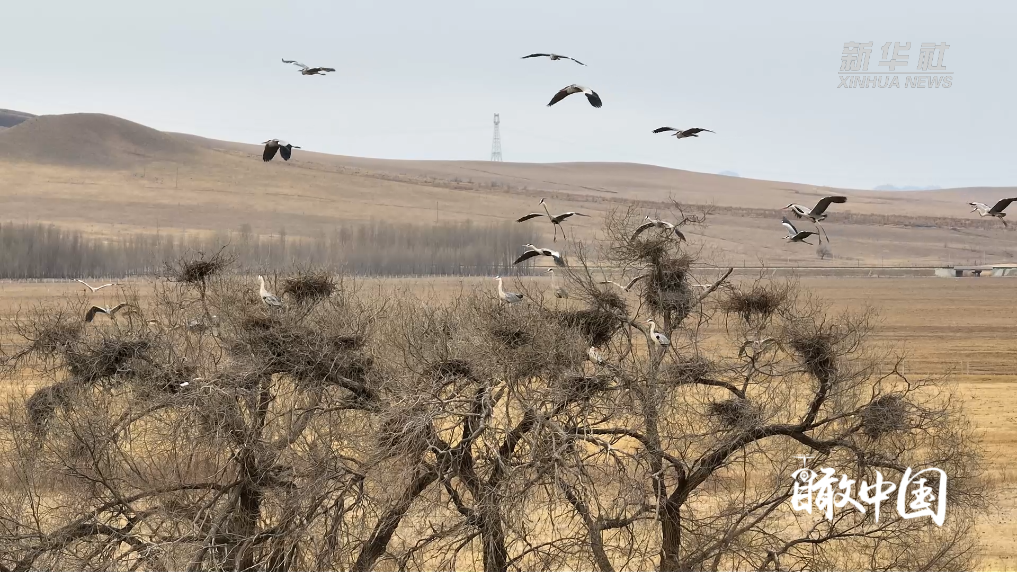 近日,在内蒙古自治区赤峰市阿鲁科尔沁旗罕苏木湿地草原,近200只苍鹭如期从南方迁徙归来,在成片的老榆树上筑巢安家,开启一年一度的繁殖季。