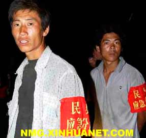 乌兰哈达乡西山湾村民兵应急分队队员夜间巡逻