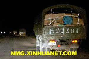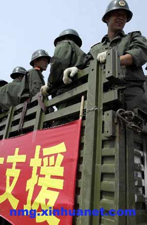 一队载满救援物资的军车驶往地震灾区巴林左旗