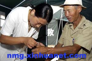 卫生院医生为受伤村民包扎伤口
