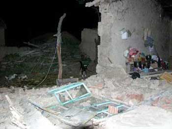 巴林左旗震中地区倒塌的房屋