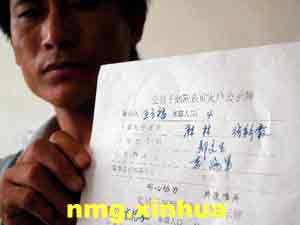 阿旗岗台乡副乡长张义成在展示该乡党员干部联系重灾户公示牌