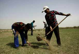 科尔沁沙地开展春季治沙植树