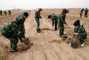 万余军民义务植树治理京津风沙源